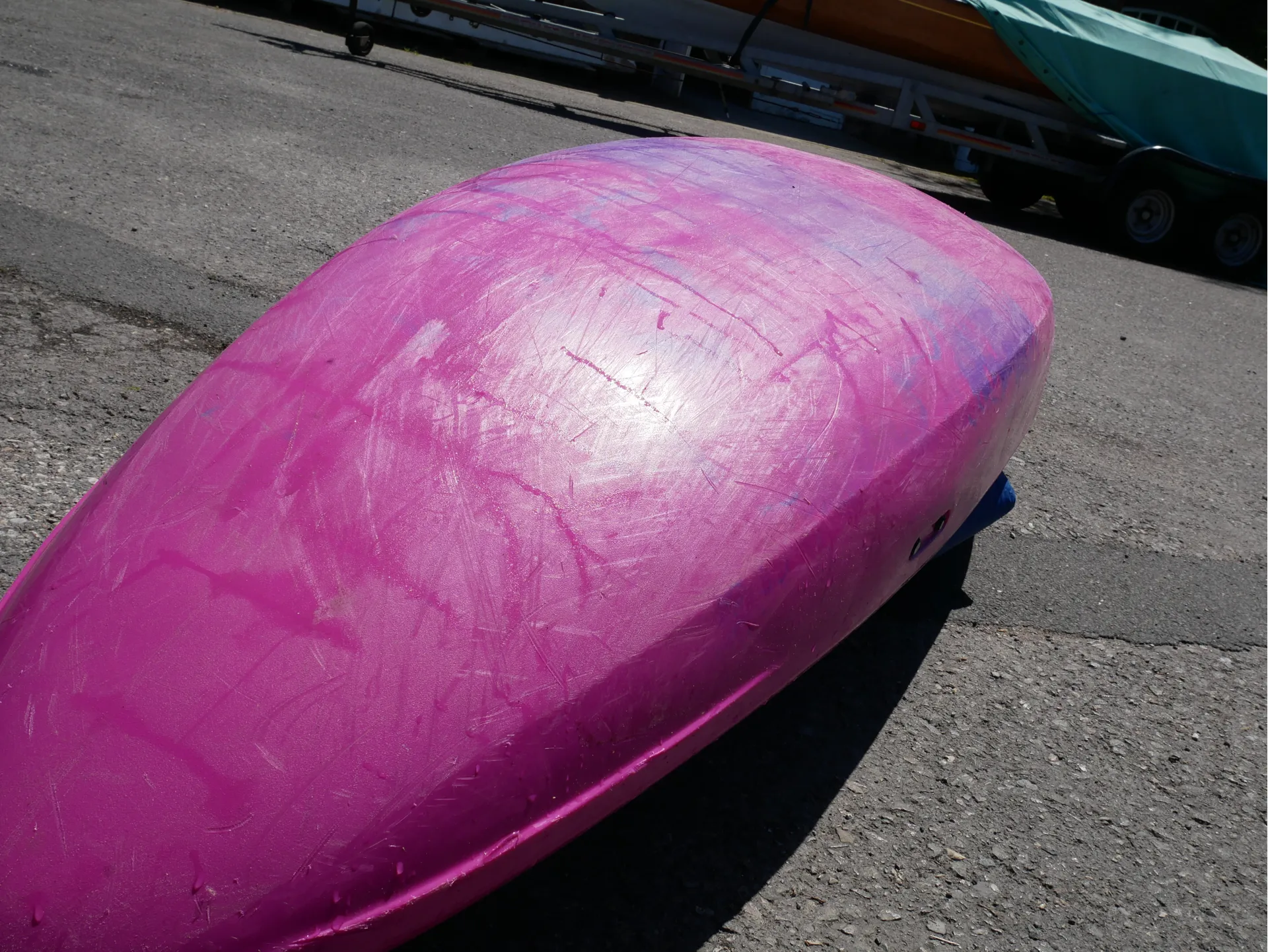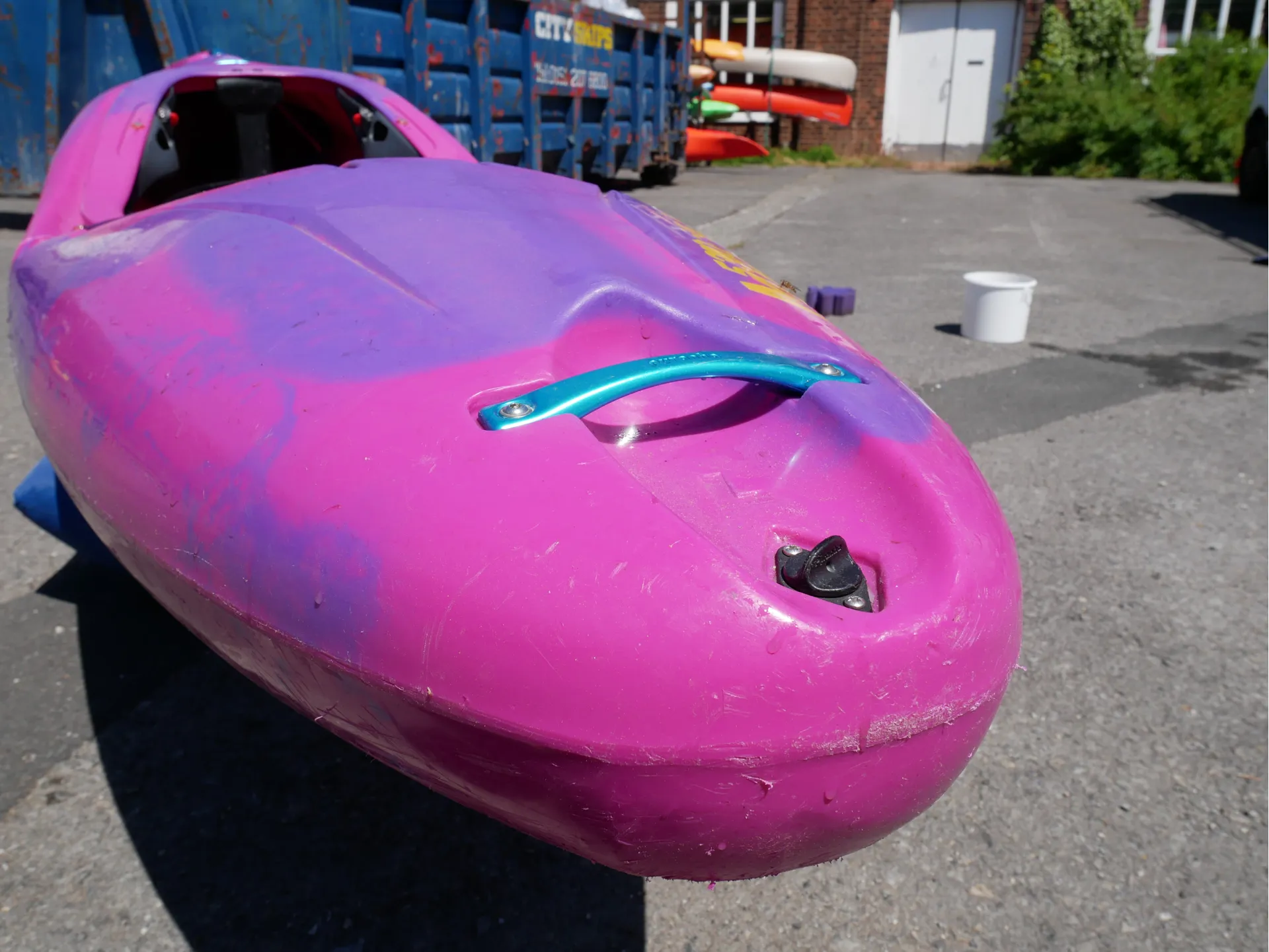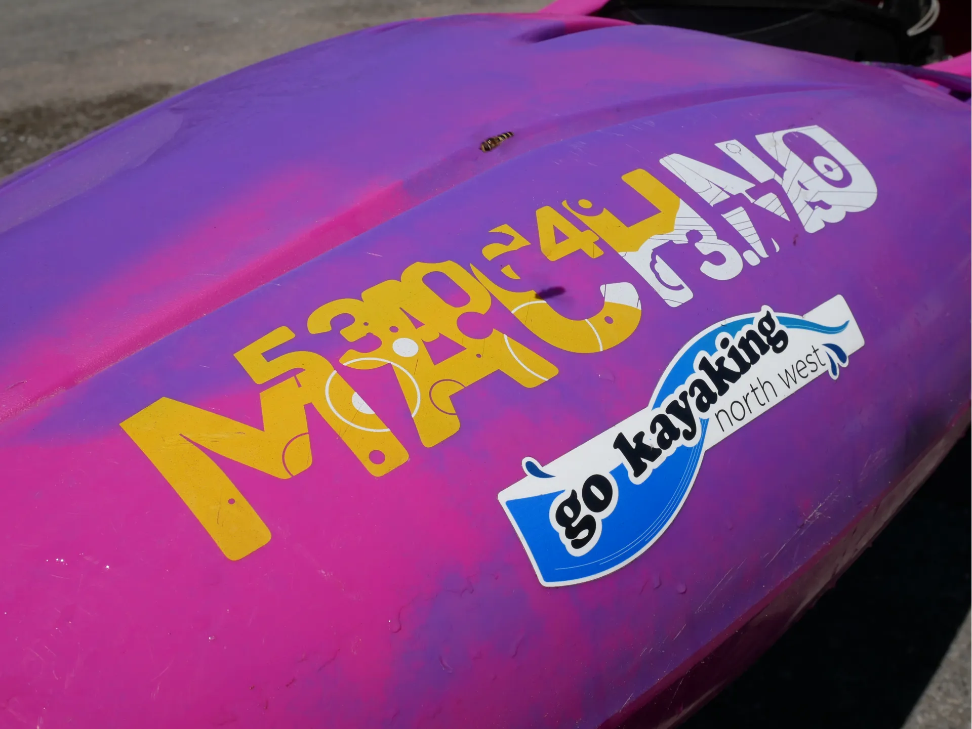 This Machno has been well used but well loved for the past eight months, and is now available for sale. It has some scratching to the hull, as to be expected from a used whitewater boat, but no dents or deep gouges.