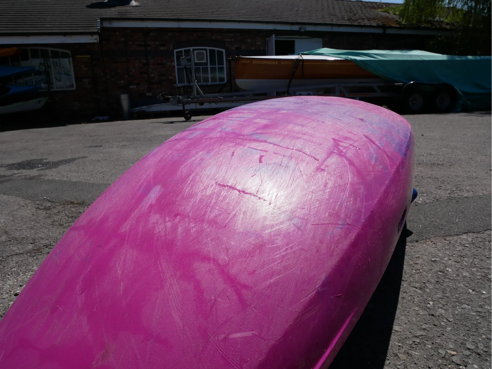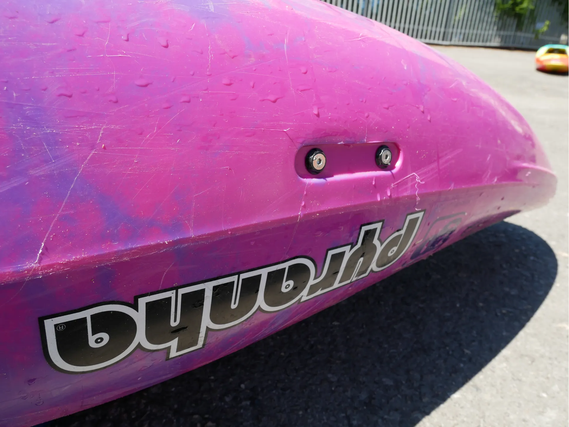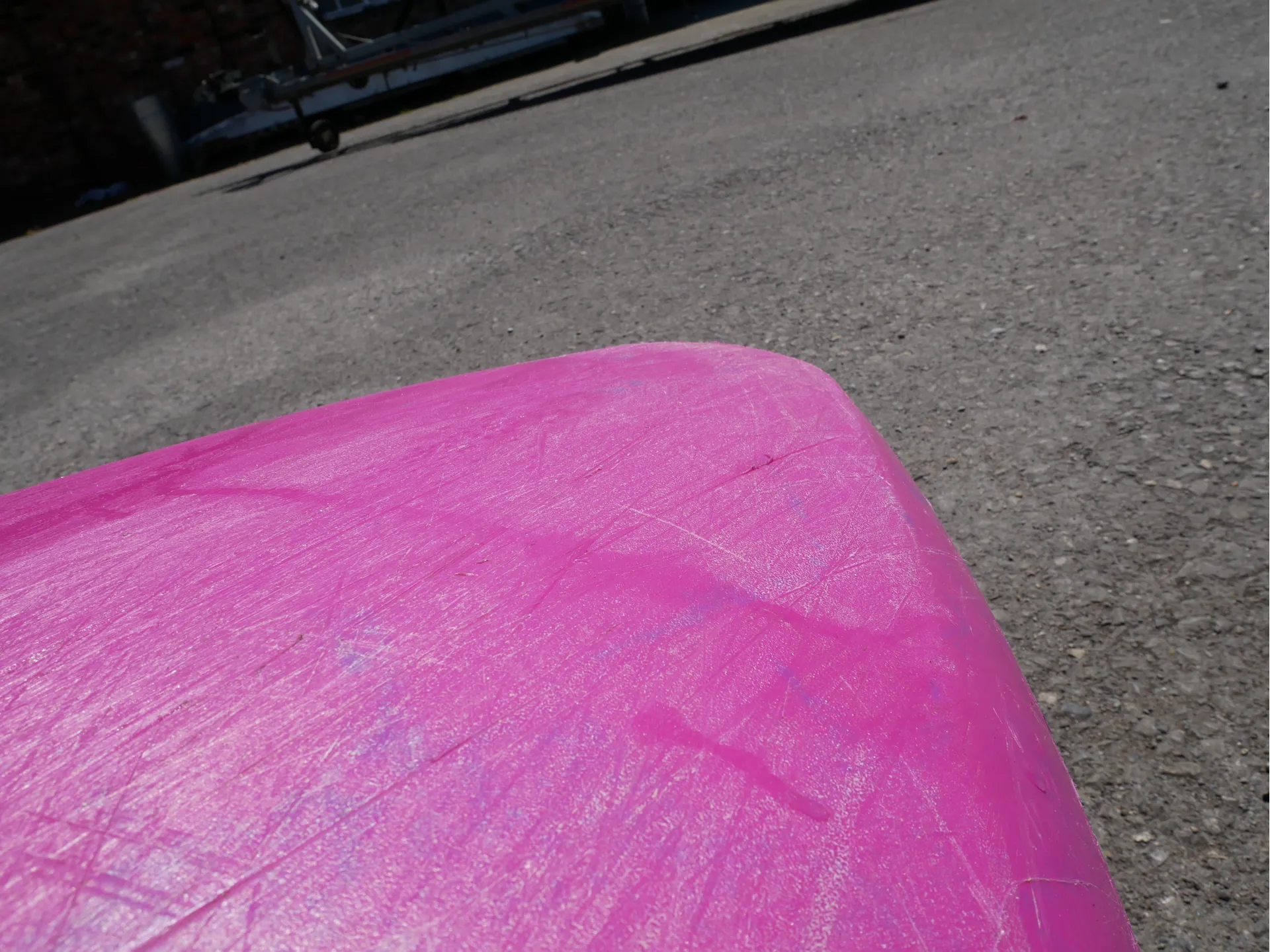 This Machno has been well used but well loved for the past eight months, and is now available for sale. It has some scratching to the hull, as to be expected from a used whitewater boat, but no dents or deep gouges.